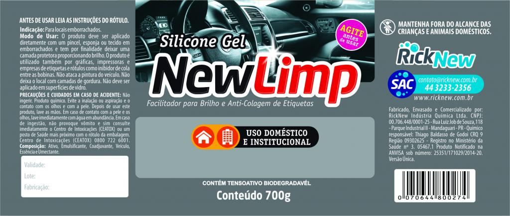 Silicone Gel New Limp é indicado para revitalizar e dar brilho em painéis e frisos de veículos, além de revitalizar e dar brilho em plásticos, couros e borrachas.(Ou utilizado por empresas de serigrafia para como neutralizador de cola, ao empulhar bobinas de rótulos uma em cima da outra).